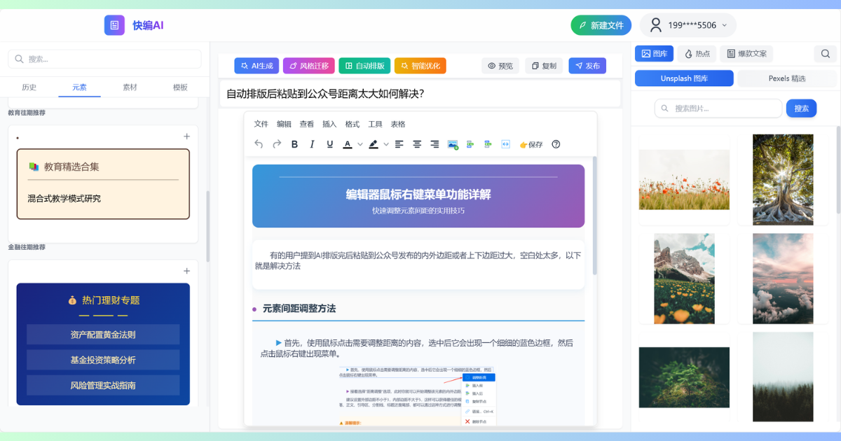 支持丰富的图片、素材、装饰元素、热点、爆款文案,自由搭配让你的文章更加生动